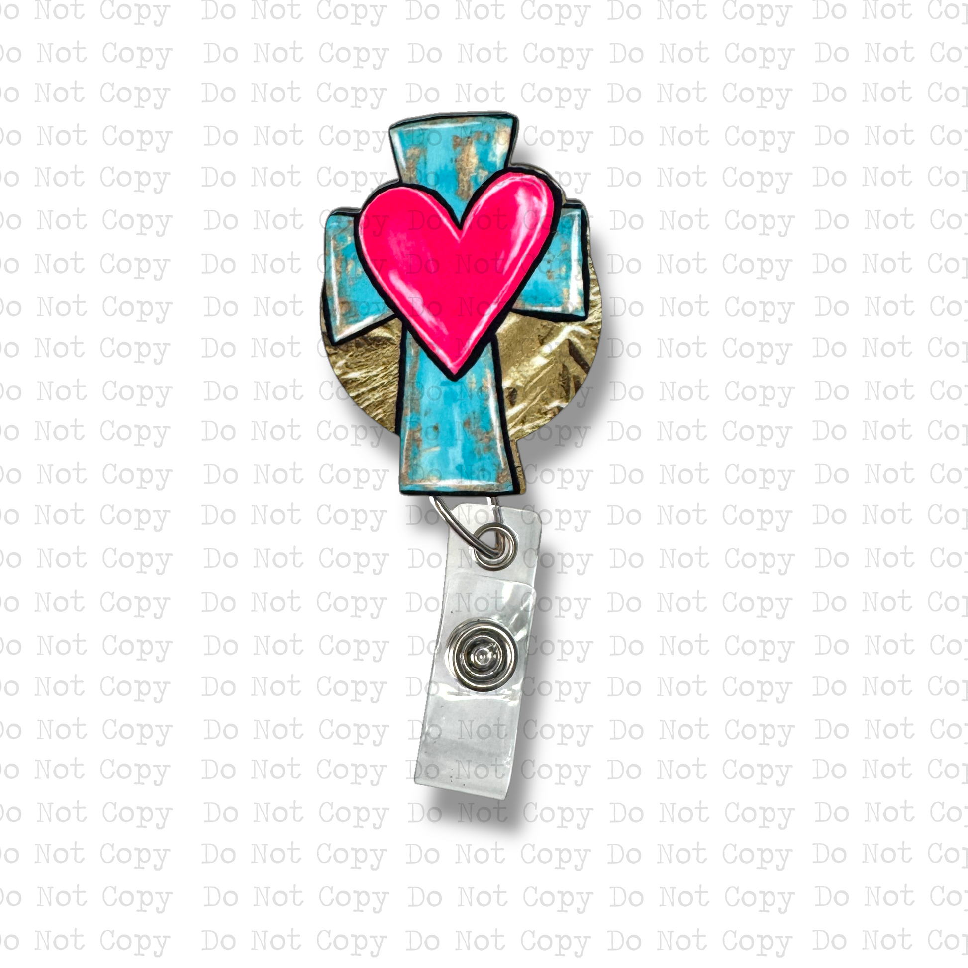 Turquoise Cross Heart Badge Button Sublimation Blank | Set of 2